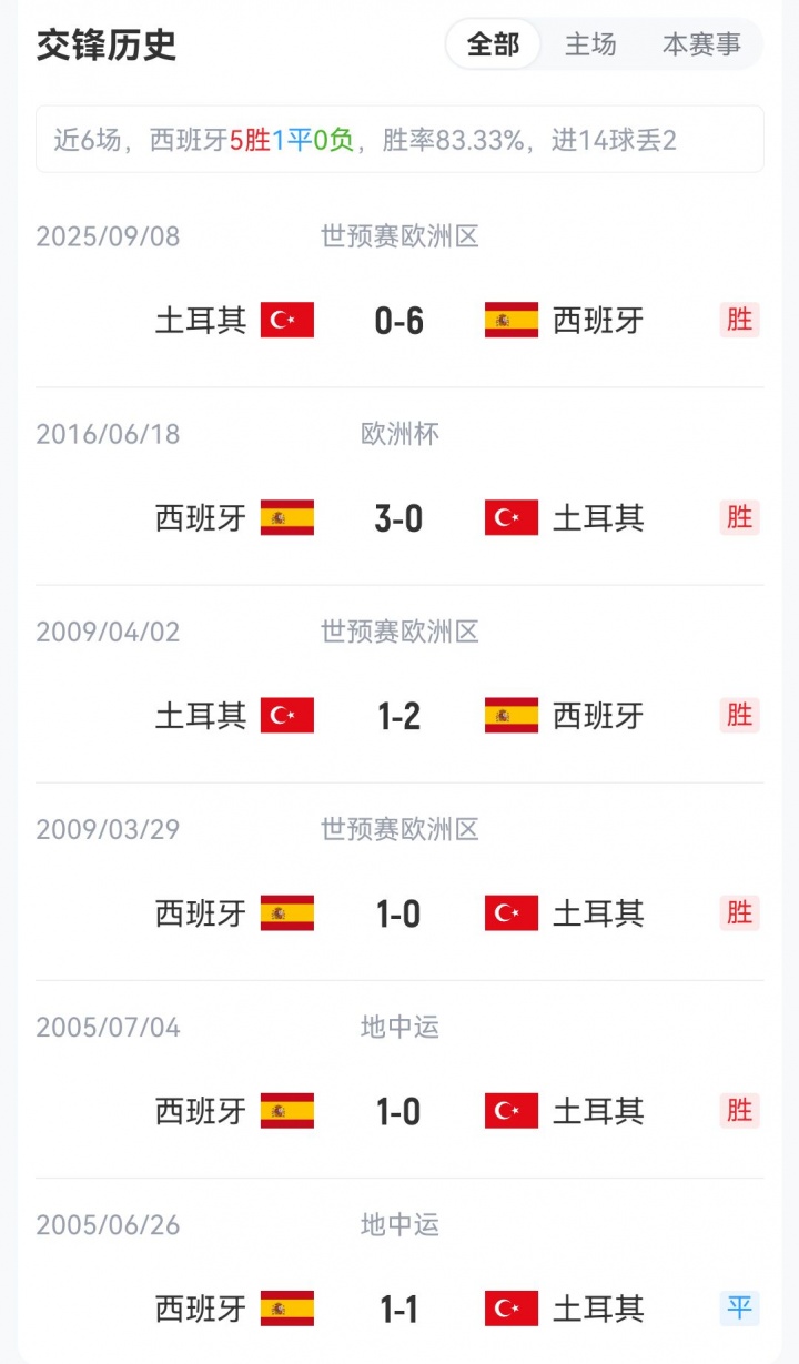 【交锋历史】
